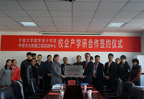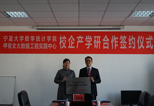 【宁夏大学新闻中心讯数学统计学院刘国军/文李雨欣/图】11月27日,数学统计学院与北京甲骨文大数据工程实践中心举行了产学研合作签约暨授牌仪式。