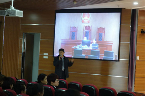 【宁夏大学新闻中心讯 政法学院】12月26日,政法学院与自治区高院、兴庆区法院联合举办的模拟法庭庭审活动在我校模拟法庭举行。自治区高级人民法院法警总队队长、宁夏大学新华学院特聘教授姜戈法官,兴庆区人民法院未成年审判庭庭长夏晓红法官、兴庆区人民法院未成年审判庭副庭长赵婧姝法官与政法学院、新华学院师生代表共同参加并观摩了庭审教学活动。