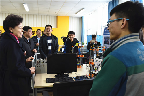 咸辉来到西夏学研究院,与学科带头人、“长江学者”特聘教授杜建录和研究学者亲切交谈,了解学科建设、著作出版等情况。作为西夏故地,宁夏大学用翔实的研究成果印证了“西夏在中国,西夏学也在中国”,在学科研究上有了国际话语权。咸辉说,要加大宣传力度,拓展研究领域,在更大范围、更高学术层次宣传西夏学研究取得的成果,助推西夏王陵成功申遗,擦亮西夏学金字招牌,让西夏学和敦煌学研究比翼齐飞,成为在世界上叫得响的知名学科。在省部共建煤炭高效利用与绿色化工国家重点实验室,咸辉肯定实验室面向国家能源战略发展、立足我区煤化工发展实际作出的努力。她要求实验室继续做好产学研用结合的文章,更好地服务于地方经济社会发展,努力将更多更好的学术论文写到宁夏大地上。2016年3月,宁夏大学在西部高校率先成立创新创业学院,面向全校60%以上的学生设立1273项大学生创新创业训练计划,超过3600名学生在创客空间中受益。咸辉说,创新创业学院是“双创”的深度实践,也是对“双创”精神的最好诠释,一定要把这块试验田深耕好、创新好,努力探索创造出更多可复制的经验。
