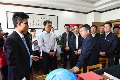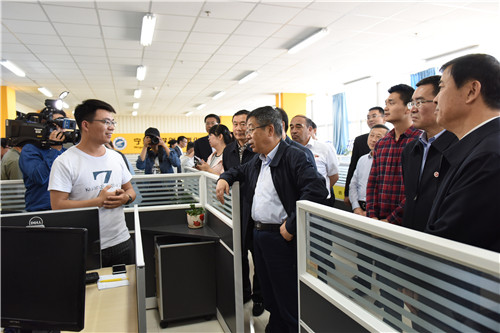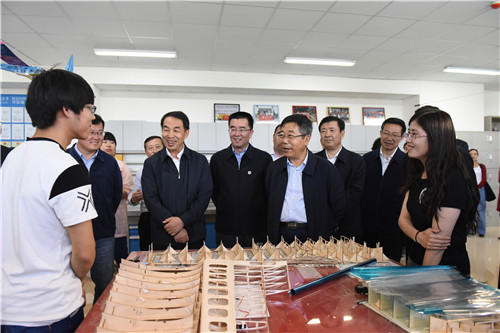 在创新创业学院,陈宝生一行走进实体创作工作室、航空科技创新工作室、机器人创新工作室、创业孵化园,与学生近距离交谈,了解他们的创意想法,询问创新创业情况。在了解到学校构建“课程教学、实践训练、企业孵化”三联动的“双创”人才培养体系时,陈宝生指出,这种产校结合、校企合作的思路很好,下一步要把它具体化,要将创意空间和实践环节、实训环节,项目与企业孵化园区想办法联动起来,做好西部民族地区高校的双创教育工作。