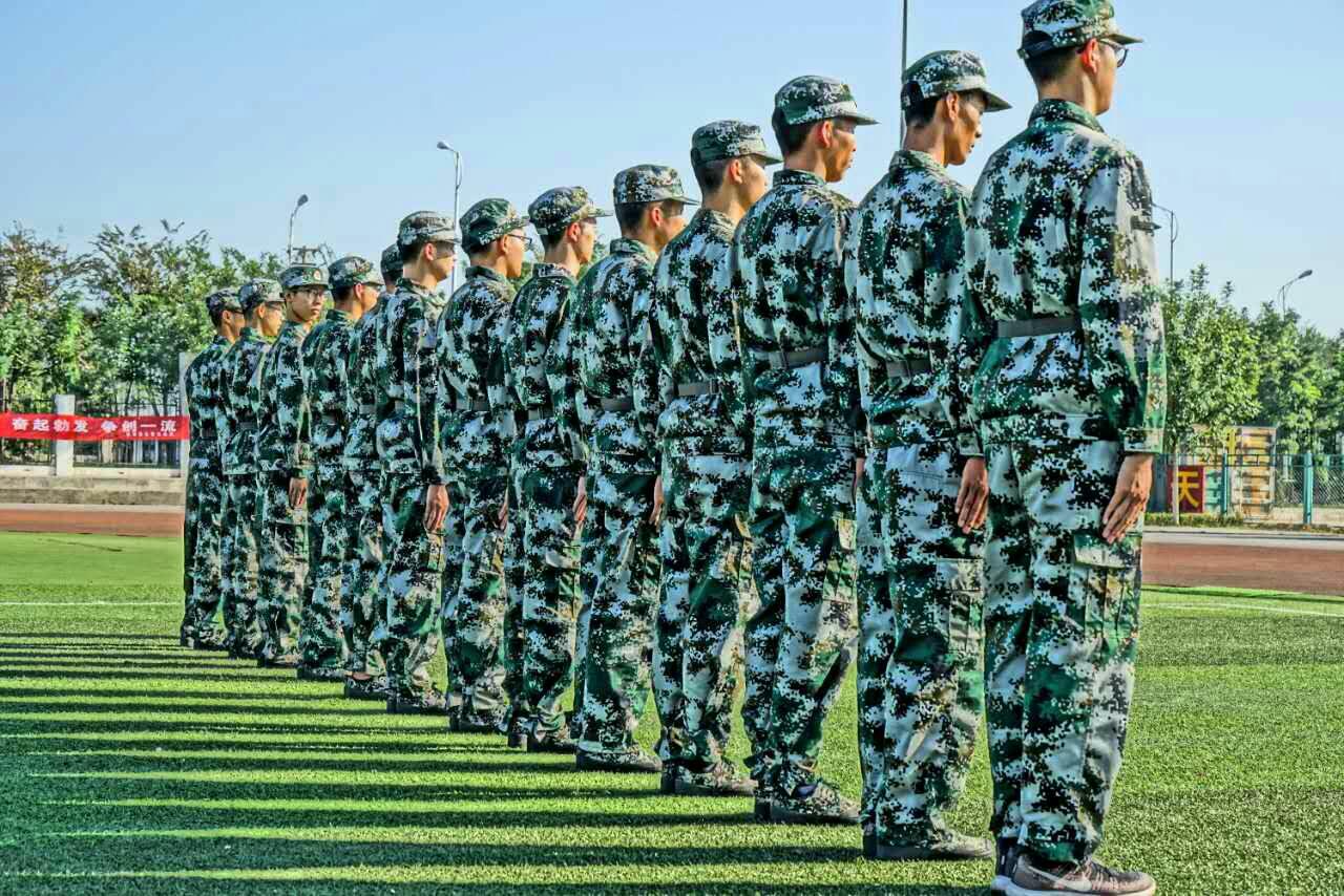 我阿院,自五湖四海来之新生校友,于此中历练,磨砺意志,强身健体。至此时,同学间友好友爱,团结一致,实得军训之效果,集我院七十名同学之心。