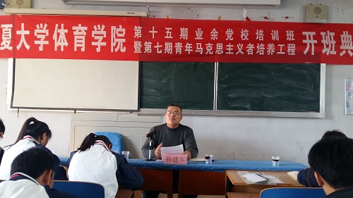 【宁夏大学新闻中心讯 体育学院胡萌/文】11月13日下午,体育学院在本部B区1教221教室举行第十五期党校培训课程,本次讲座由体育学院党委书记孙建军主讲。