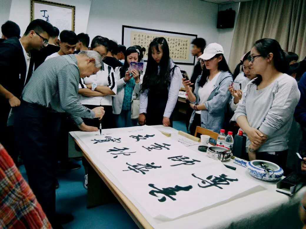 在书会活动中,“三人行书画社”大胆创新,成功地将京剧、太极拳、古琴、古筝等传统文化与书画艺术相结合,在古色古香的音乐表演声中,各位书画家挥毫泼墨,为师生留下了珍贵的墨宝,并对书法爱好者进行了详细的指导,使此次活动达到了高潮。