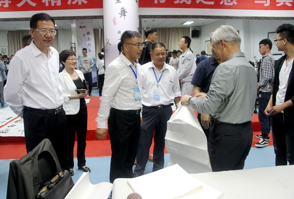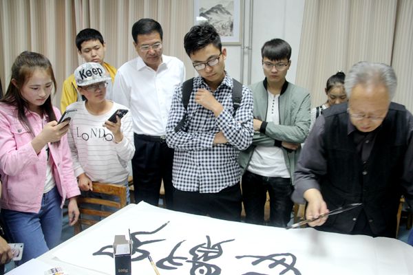自治区原人大副主任余今晓、中国书法美术创作中心终身荣誉教授、区文史馆馆长曾玉强先生、银川市政协书画院院长助理尤银春一行五名我区著名书画专家、宁夏书画函授专修学院名誉院长丁生俊老师,学生处、团委、老干部处等相关领导以及学校爱好书画的教师、学生一百多人参加了揭牌仪式,校党委副书记王宏伟莅临现场参加了书法活动。