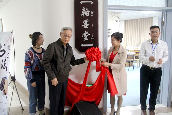 国家大学生文化素质教育基地主任刘旭东主持了揭牌仪式、书记李慧琴为揭牌仪式致辞,她对各位书画家及书法爱好者的到来表示热烈的欢迎,对支持、关心我校书法事业的各界人士表示衷心的感谢,并预祝“翰墨堂”培养出更多优秀人才。原人大副主任余今晓和学生处副处长郑燕玲为“翰墨堂”揭牌。